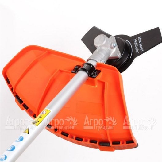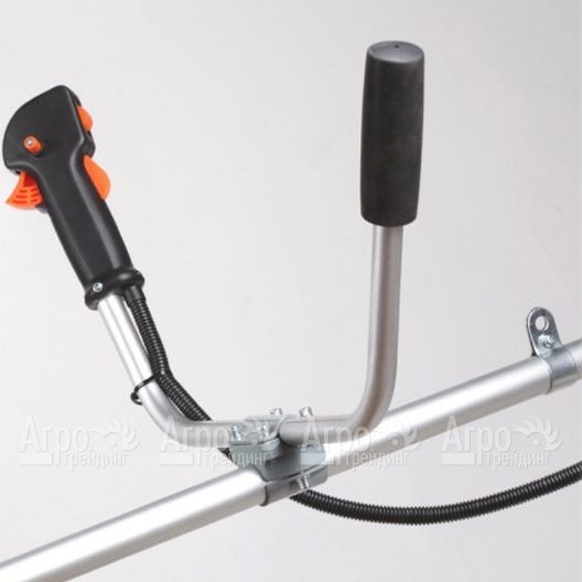 Инструмент оснащен прямой штангой на которой крепится велосипедная рукоятка. Рукоятка крепится к штанге на предпочтительной для пользователя высоте, форма рукоятки не ограничивает амплитуду размаха и способствует удобству работы и ведения инструмента. Двухтактный двигатель характеризуется хорошим ресурсом, имеет облегченную систему пуска. Встроенные в рукоятку курок газа и фиксатор курка газа упрощают управление инструментом. Доступ с воздушному фильтру не требует вспомогательных инструментов.