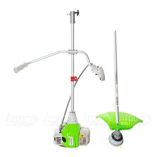 Характеристики товара: Бензокоса (бензиновый триммер) RedVerg RD-GB243SПодробное описание товараБензокоса RedVerg RD-GB243S – незаменимый помощник для обработки садового и газонного участка. Благодаря возможности применения в качестве режущего полотна трехлопастного диска или лески можно выполнять скашивание молодой травы, небольших кустарников и сучьев деревьев. Система облегченного запуска Easy Start позволяет быстро начать эксплуатацию после продолжительного простоя на морозе. Благодаря наличию ранцевой оснастки нагрузка равномерно распределяется на руки и спину оператора. Для удобной транспортировки в багажнике легкового автомобиля и хранения в небольшом помещении агрегат оборудован складной рукояткой. Все основные органы управления расположены на рукоятке. Защитный кожух предотвращает попадание грязи и дробленой травы, а также других мелких частиц садового мусора на оператора. |