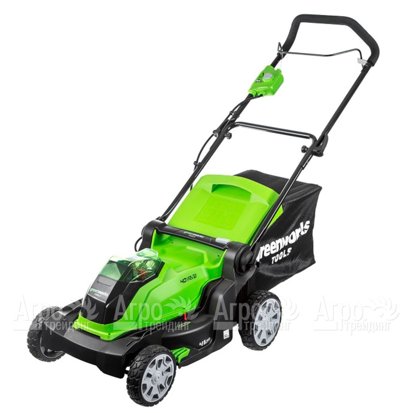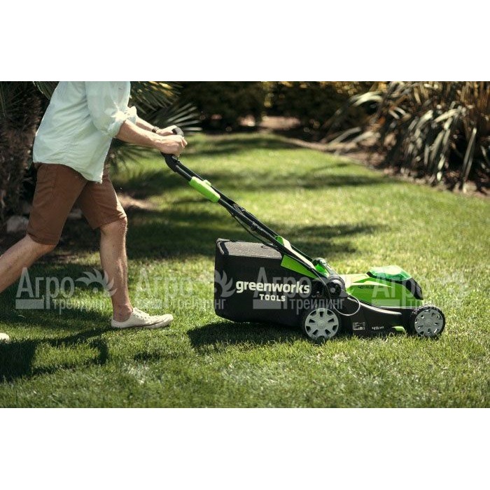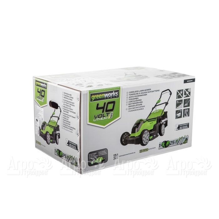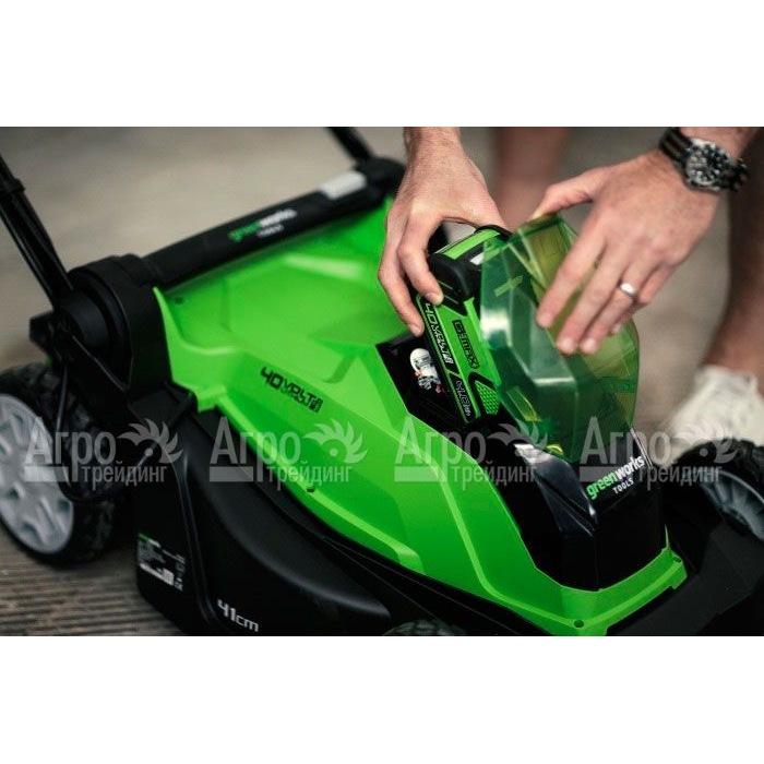 На фотографии Газонокосилка аккумуляторная GreenWorks G40LM41K3: