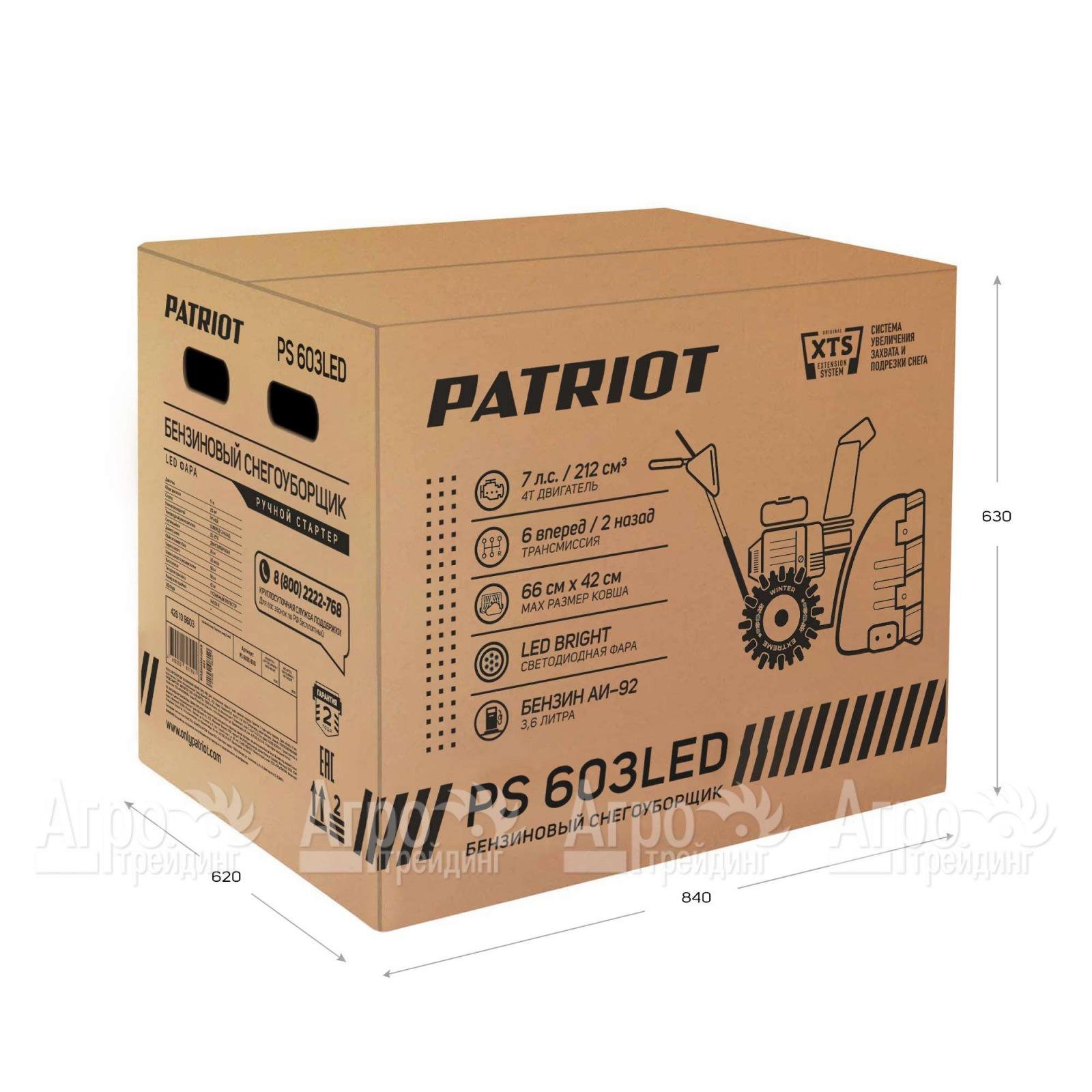 Снегоуборщик Patriot PS 603 LED оснащен мощным четырехтактным двигателем, обладающим повышенной производительностью, минимизирующим топливные затраты и способным работать даже при критически низких температурных режимах. Подобная техника оборудована удобными ручками, что способствует комфортному процессу управления. Также к числу достоинств относится наличие покрышек с глубоким протектором, склонным к самоочистке и предотвращающим вероятность пробуксовки.